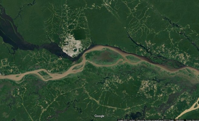 Au Brésil près de la ville de Manaus, deux fleuves se rencontrent. Leurs eaux de couleurs très différentes coulent sur des dizaines de kilomètres sans se mélanger.
