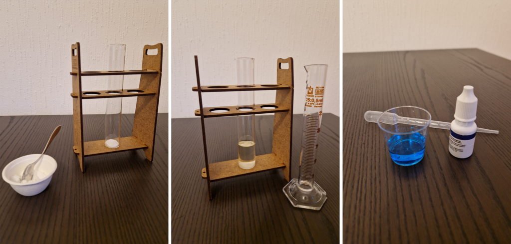 - Observe ce qu’il se passe pendant 1 à 2 minutes. Rajoute ensuite quelques gouttes de vinaigre.