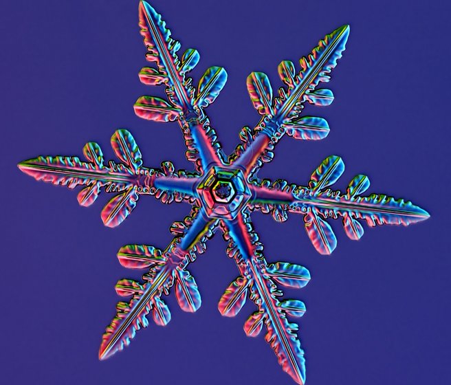 Ken Libbrecht, professeur de physique au prestigieux California Institute of Technology étudie la formation des cristaux de glace et maîtrise la photographie des flocons de neige. Tu trouveras d’autres images et des infos sur le site www.snowcrystals.com.