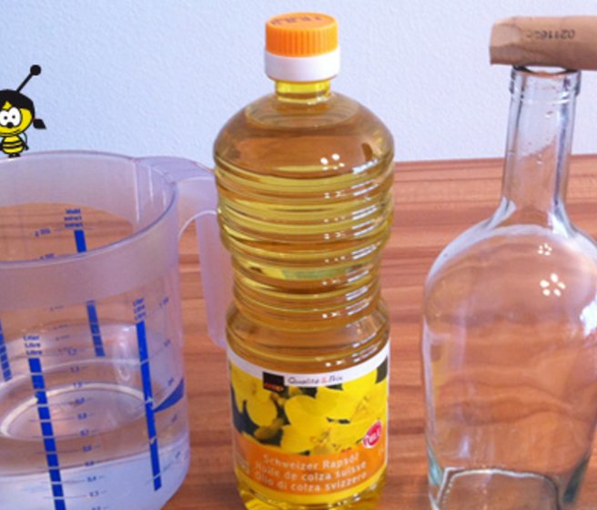 Cinq ingrédients suffisent pour bricoler une lampe à lave: une bouteille en verre, de l'huile, de l'eau, du colorant alimentaire et au moins un comprimé effervescent.