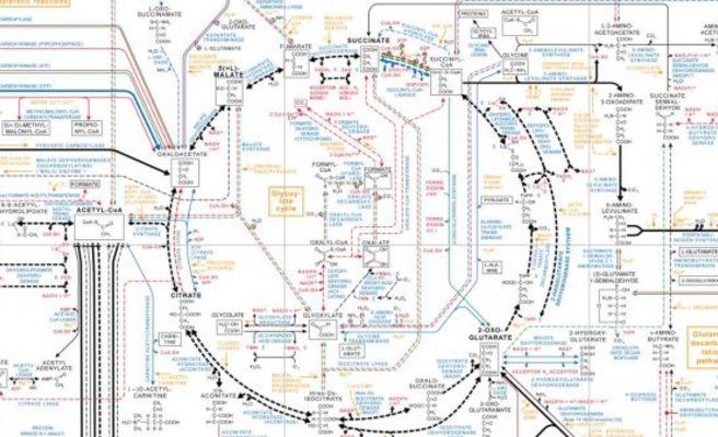 Die als Poster oder elektronisch erhältlichen Roche „Biochemical Pathways“ bieten einen Überblick über die chemischen Reaktionen in den Zellen verschiedener Arten.