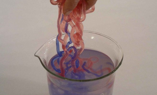 Erwärmst du einen Joghurtbecher, will er sich in seine ursprüngliche Form zurückziehen, nämlich in die flache Platte, aus der er hergestellt wurde. Hinderst du ihn daran, sich vollständig zurückzuziehen, so können lustige Formen entstehen.