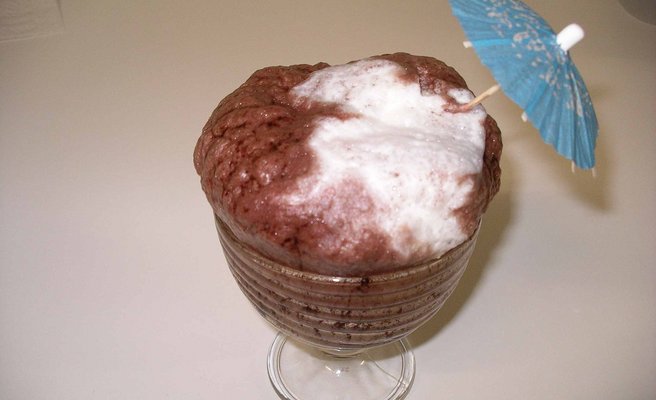 Ein Himbeerglace-Coupe? Genau so sieht das Ergebnis dieses Experiments aus! Es ist in Sekundenschnelle zubereitet und hat null Kalorien, aber so lecker es auch erscheint: Essen solltest du es nicht.