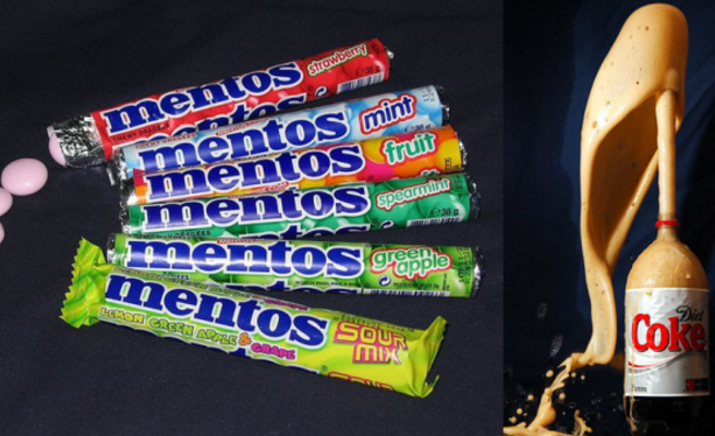 Eine Flasche Cola light, eine Packung Mentos-Bonbons und ein Bindfaden - so einfach braust du ein hochexplosives Gemisch!