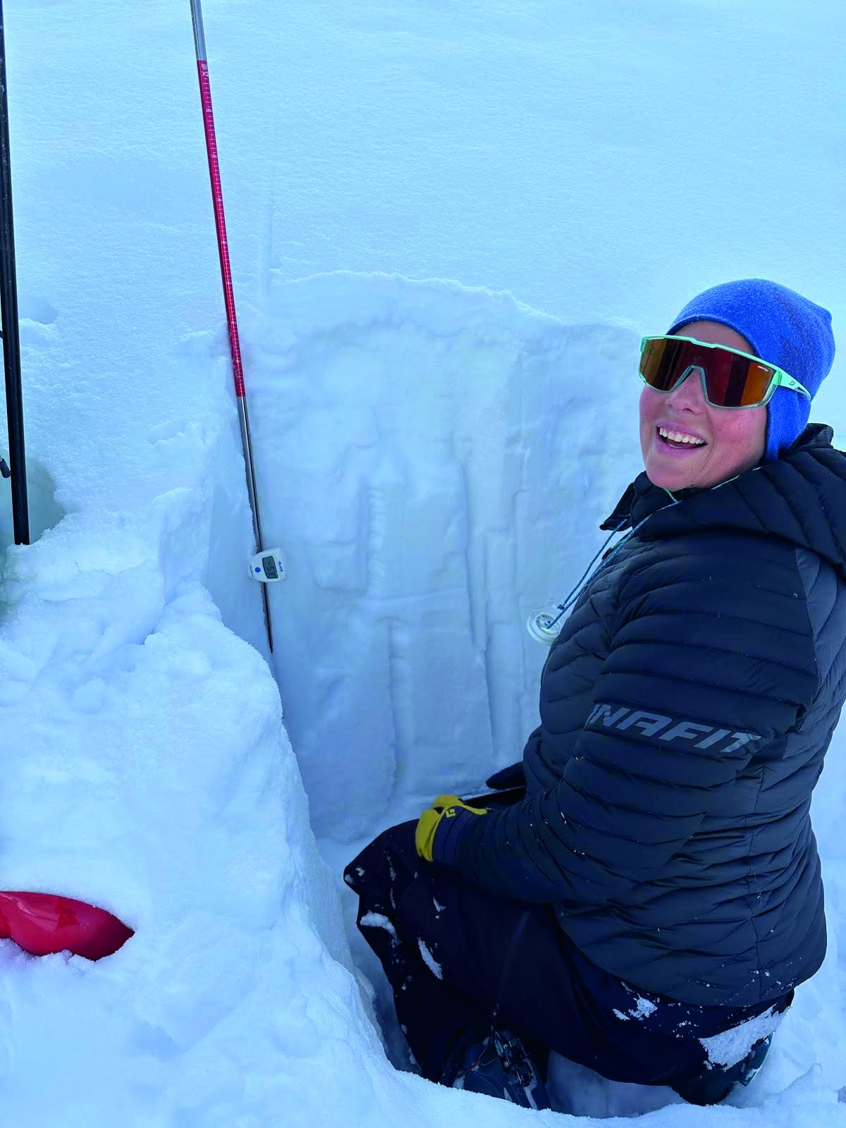 Im Winter erscheint das Lawinenbulletin täglich um 17 Uhr. Im Turnus hat Célia jeweils zwei Tage lang die Hauptverantwortung dafür. Vier weitere Tage arbeitet sie im Dreierteam mit, das schon am Vormittag Daten aus Wettermodellen und -prognosen sammelt und die Meldungen und Messungen der rund 200 über den ganzen Alpenraum verteilten Beobachter:innen analysiert – das sind zum Beispiel Bäuer:innen in hochgelegenen Tälern, Bergführer:innen oder Patrouilleur:innen in Skigebieten. Ein Grossteil der Arbeit passiert am Computer mit speziell für den Lawinenwarndienst entwickelter Software – auch KI-Programme, die eine zusätzliche Einschätzung der Lawinengefahr liefern, gehören seit kurzem dazu. Aber Célia ist oft auch draussen unterwegs. Dann gräbt sie zum Beispiel Scheeprofile, um die einzelnen Schneeschichten und Eiskristalle genau zu untersuchen.