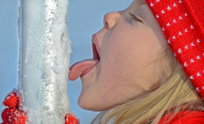 Hast du schon einmal mit deiner Zunge Schnee vom Skistock geleckt? Vermutlich blieb deine Zunge kleben. Und vielleicht hattest du Angst, sie nie wieder losreissen zu können ...